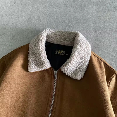 Custom Embroidered Logo Zippered Sherpa Turn-Down Collar Heavyweight Jacket