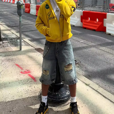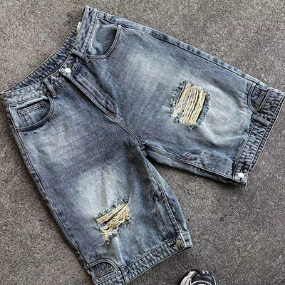 Define your street style with confidence! Our custom-made denim shorts are crafted from premium denim fabric, featuring a tailored washed process that delivers a vintage fade and perfectly distressed texture. The loose fit design with intentional ripped details ensures both comfort and trendsetting appeal, making them ideal for daily wear and standout streetwear looks.