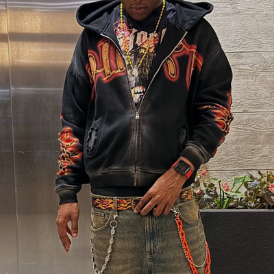 French Terry Zip Up Hoodies with Screen Printing & Rhinestone Details