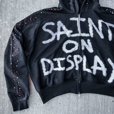 Custom Printed Hoodie Manufacturers Mens Zip up Rhinestone Hoodie French Terry Bulk 450 Gsm Oversized Hoodie 8