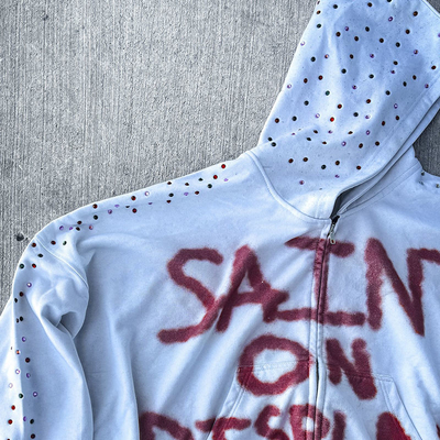 Custom Printed Hoodie Manufacturers Mens Zip up Rhinestone Hoodie French Terry Bulk 450 Gsm Oversized Hoodie 7