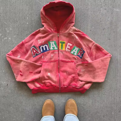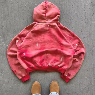 Custom Y2K Style Acid Wash Sun Faded Hoodie Zip up Streetwear Premium Hoodie Rhinestone logo Unisex Cropped Oversized Hoodie